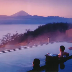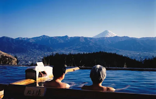 Las instalaciones son impresionantes, con 16 tipos de baños que incluyen baños de cueva, saunas de vapor y baños de agua carbonatada, perfectos para estimular la circulación de las piernas cansadas. Sin embargo, la joya de la corona es su baño panorámico al aire libre, diseñado específicamente para enmarcar el Monte Fuji como si fuera una pintura viva. Es una opción fantástica si viajas en grupo o familia, ya que también ofrecen baños privados alquilables por horas.