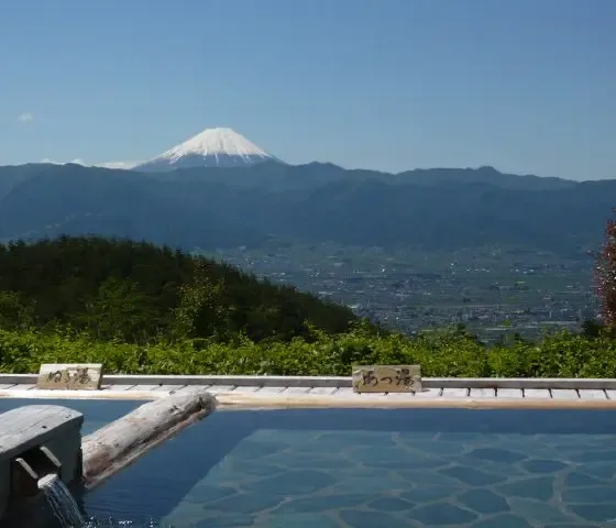 Este lugar se ha ganado a pulso su estatus de leyenda entre los viajeros de carretera. Su nombre, que podría traducirse como “Onsen Descuidado”, hace referencia a su encanto rústico y natural, sin pretensiones de lujo, pero con una ubicación que vale millones. Situado en la cima de una colina, ofrece una panorámica despejada de la cuenca de Kofu y, presidiendo el horizonte, el majestuoso Monte Fuji.