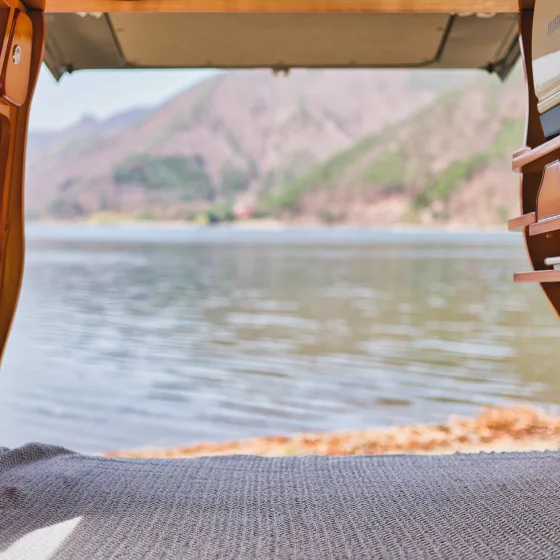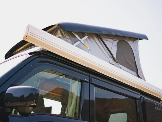 *Camping vehicles have a higher center of gravity than ordinary passenger cars, which causes more rolling (lateral sway) and pitching (vertical sway) while driving. Also, since they are more susceptible to crosswinds, please drive safely, paying special attention when traveling at high speeds.