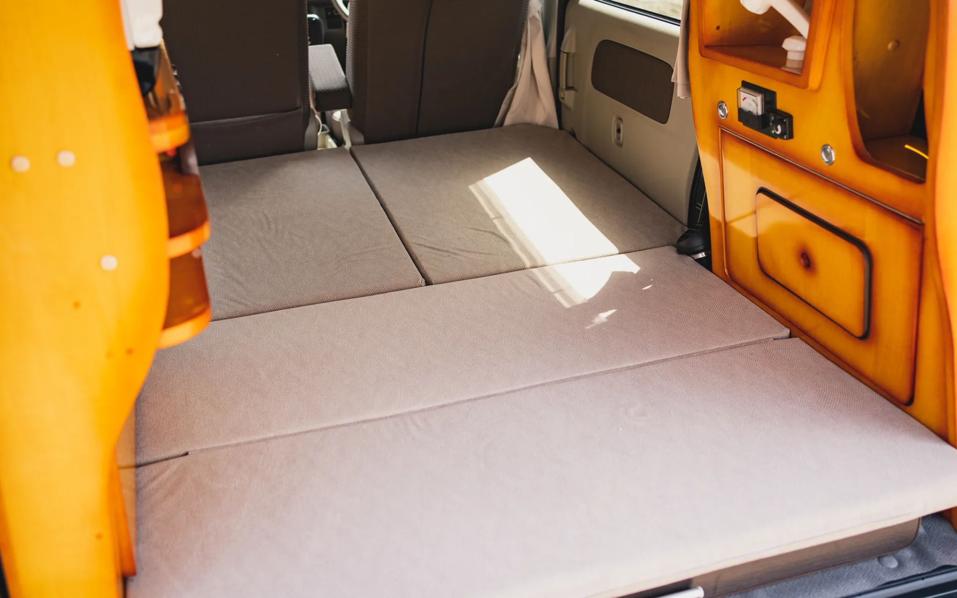 At first glance, the interior looks like an ordinary light van. With the rear seats, it can accommodate four people.